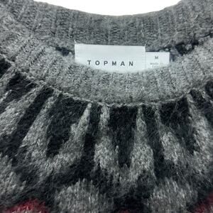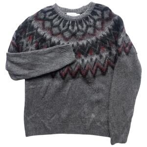 TOPMAN Nordic Crewneck Sweater Fuzzy Gray Red Men's Size Medium