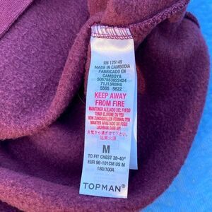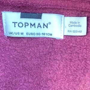 TOPMAN BURGUNDY SWEATSHIRT/HOODIE WITH FRONT POCKET. Size Medium. Excellent pre-owned condition. Medium weight. Ships from a smoke and pet free home.