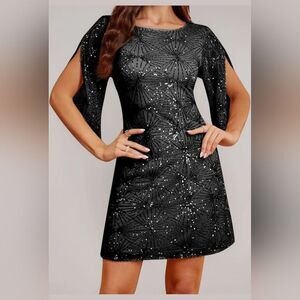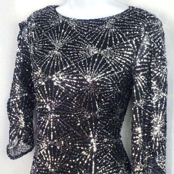TOPMELON Sequin Shift Dress Glitter Chiffon 3/4 Sleeve Glitter Dress.