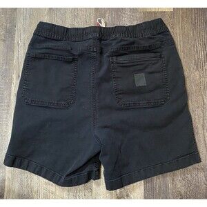 TOPO Designs Mens Organic Cotton Shorts Black L 6" Inseam Button Fly Pockets