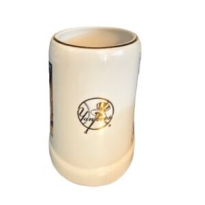 Vintage 1995 Collectible Topps 100th Anniversary Mug with Babe Ruth's trading card facsimile on one side and Yankees logo on the other