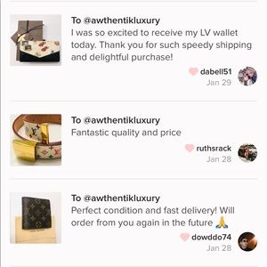@awthentikluxury I see the items did ship today and thank you for doing so quickly. Did have one more question. (No disrespect but given your reputation and comments by other people you are respected with authenticity on the site) you wrote GENUINE and not 100% authentic on both of the items I purchased. Given seeing the date codes I did assume authentic. Are they? Thank you