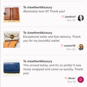 The Listing for the LV wallet was deleted. Thanks for looking out for other Poshers. I thought it was fake, that’s why I asked for the date code. I can’t believe how many fakes I see on here. It really makes it hard for the honest sellers.