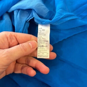 TOPSHOP 100% Silk Purple/Blue Ombré High/Low Razorback Dress with pockets Size US 4