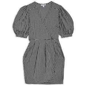 TOPSHOP 9–9 Gingham Tulip Puff Sleeves Dress - NWT Black White - Size 4