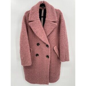 TOPSHOP Alicia Boucle Slouch Pink Wool Blend Long Line Coat Size S