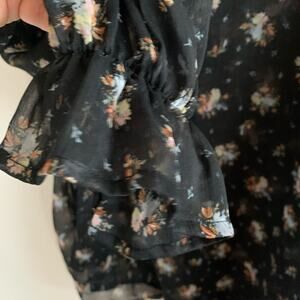 TOPSHOP Beaded Floral Ruffle Cuff Blouse. Button front. Slightly sheer style.
