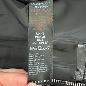 TOPSHOP Black Faux Leather Jacket Size 6