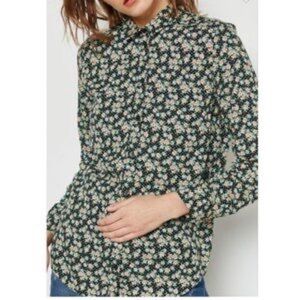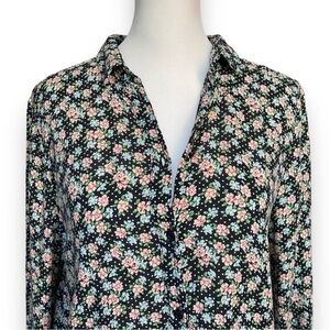 TopShop Black Floral and Polkadot Print Long Sleeve Button Down Blouse Size 2 (Small).