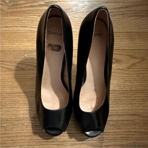 TOPSHOP Black Peep Toe Heels Shoes Size 37
