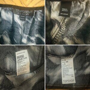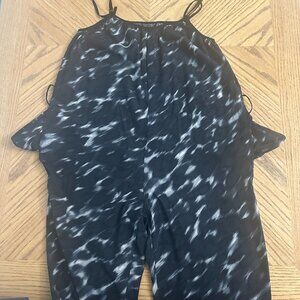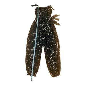 TOPSHOP Black White Tie Dye Jumpsuit Full Length Loose Flowy Pockets Belt Size 6