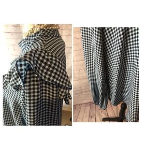 Pretty Ruffled Black and Blue Top Shop Blouse. Dainty little round collar with two tiny button closures in the back. Size 14. Simply Darling.