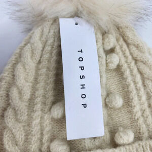 TOPSHOP Bobble Beanie In Cream Knit OSFM NWT