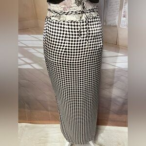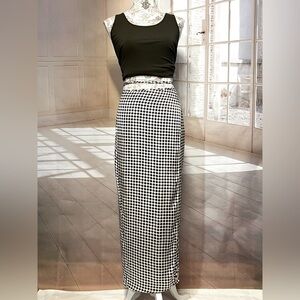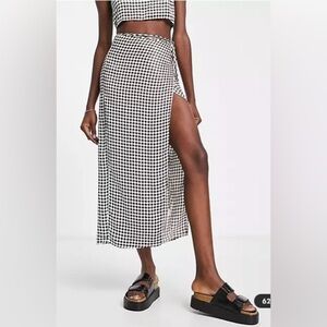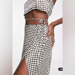 TOPSHOP Brown and white checkered wrap maxi skirt size 6