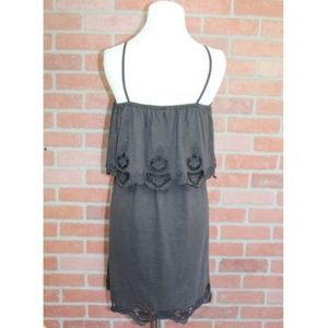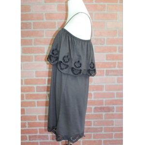 Charcoal Gray Eyelet Off the Shoulder Spaghetti Strap Dress