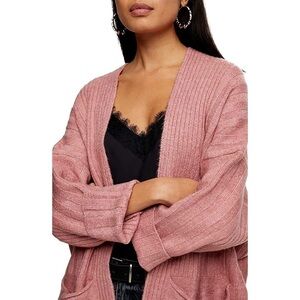 TOPSHOP Chunky Ribbed Rose Pink Long Cardigan NWT