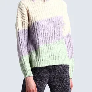 knit, heavy-weight knit, no appliqués, multicolor pattern, round collar, long sleeves, no pockets