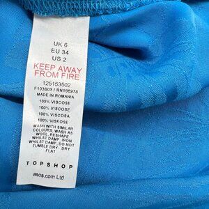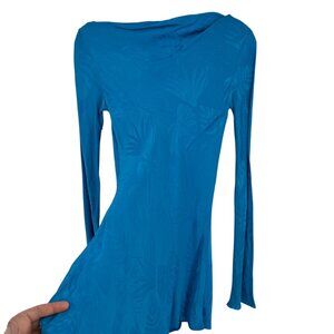 TOPSHOP Cowl Neck Bell Sleeve Tunic With Leaf Pattern Turquoise Size 2 NWOT
