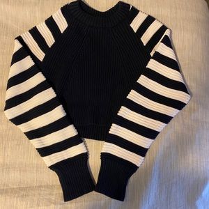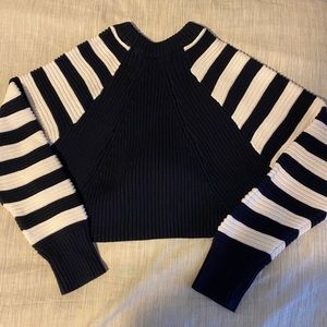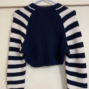 Perfect condition, barely worn cropped sweater. Thick, comfortable knit. Navy blue and white stripes down sleeves. Fits XS-S