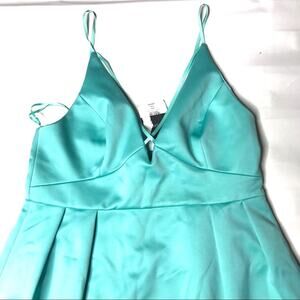 Don't stop dancing in this playfully pleated fit-and-flare dress made from pretty crepe with a plunging, crisscrossed neckline. - 34" length (size 8) - Hidden back-zip closure - Plunge neck - Spaghetti straps - Lined - 100% polyester - Machine wash, dry flat - Imported