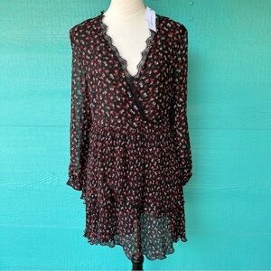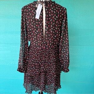 TOPSHOP DARK FLORAL CHIFFON RUFFLE LONG SLEEVE SURPLICE MINI DRESS SIZE 8 NWT