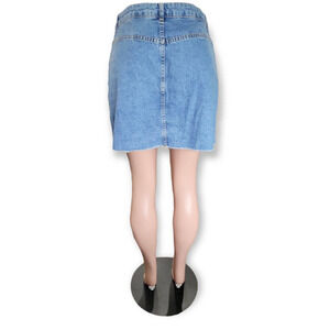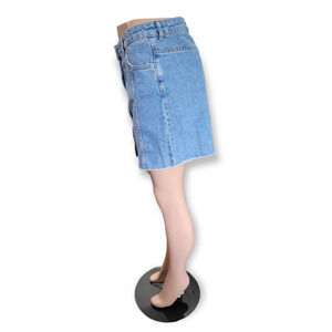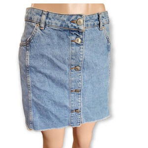 TOPSHOP Denim Button Down Raw Hem Mini Skirt Size 8 Blue