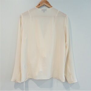 This cream blouse from Topshop features a sophisticated wrap design with a tie front, offering a modern and elegant look.