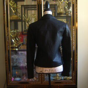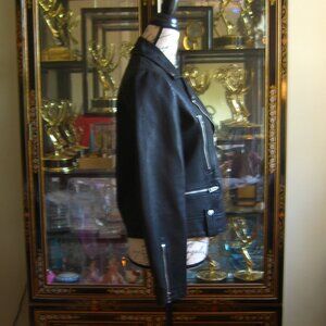 Fabulous black faux leather biker moto jacket. Made of polyuerathane. New without tags. Excellent condition.