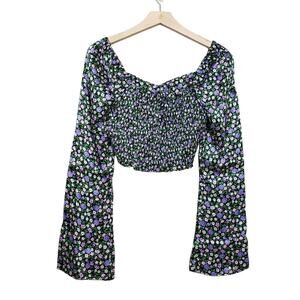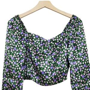 TOPSHOP Floral Print Puff Sleeve Crop Top NEW