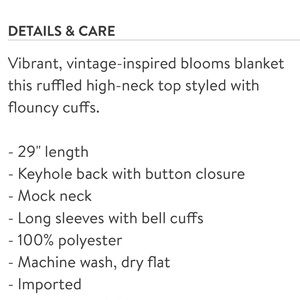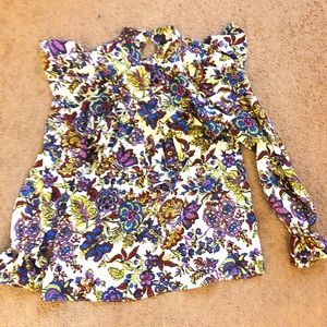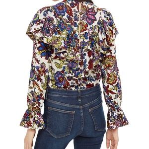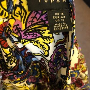 Floral Ruffle top from Topshop, size US 12 (Topshop is UK sizing, UK 16). Neck button closure. Excellent, like new condition. Retails $65 plus tax and sold out online.