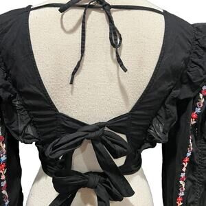 TOPSHOP Floral tie back crop top Black Size 2