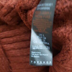 TOPSHOP Funnel Mock Neck Sweater Sz 12 Dark Red Split Hem Soft Long Sleeve
