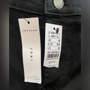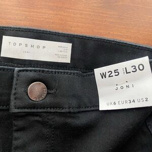 TOPSHOP “JONI” U.S. size 2 or size 25Wx 30L Super High Waisted Skinny Black Jean