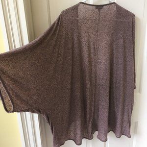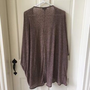 Kimono style open front cardigan from Topshop. Generous, flowy cut. Light, linen-blend marled fabric is slightly sheer (see close up detail in image 6).