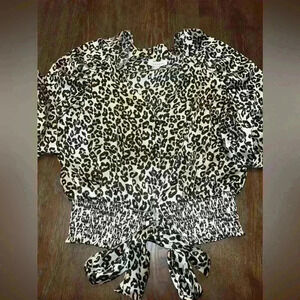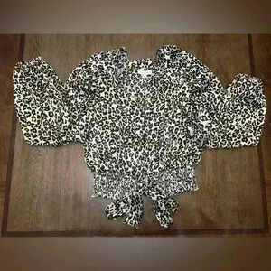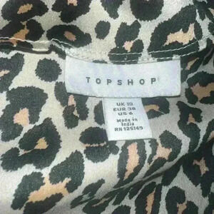 TOPSHOP Leopard Print Satin Long Sleeve V Neck Elastic Tie Waist Blouse Sz 6 US
