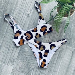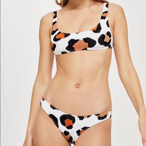 TOPSHOP Leopard Ribbed Bikini Set