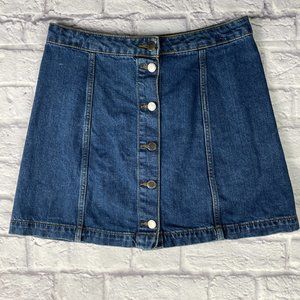 TOPSHOP MOTO DENIM A LINE BUTTON MINI SKIRT SIZE 28
