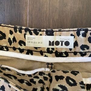 Topshop MOTO Leopard Print 1/4 Zip Denim Mini Skirt Size 6