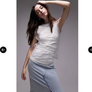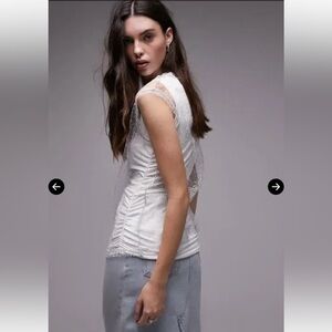 🆕 TOPSHOP Metallic Layered Mesh Sleeveless White Top