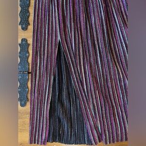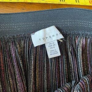 TOPSHOP Metallic Plisse Striped Midi Skirt Size 8 A-line Elastic Waist Slit