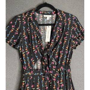TOPSHOP Mini Shirt Linear Floral Dress Tie Front 100% Viscose Black Women Size 2