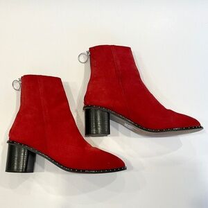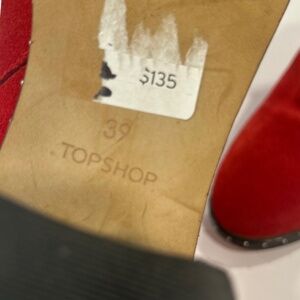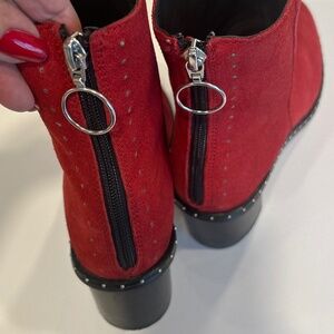 TOPSHOP Miranda Ankle Boot Red Suede Studded Block Heel Size EU 39