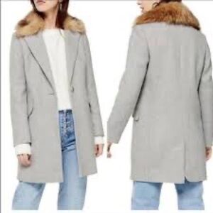 Step out in style donning this polished coat topped with a detachable faux-fur collar (hello, glam).