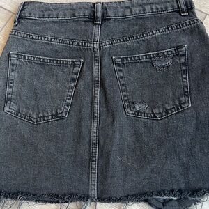 TOPSHOP Moto distressed frayed black denim mini skirt size 4