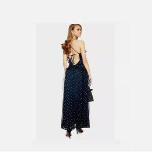 TOPSHOP NAVY ADJUSTABLE STRAP MAXI DRESS with Gold dots