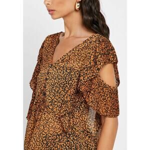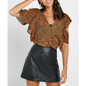 TOPSHOP NEW $68 Animal Print Plisse Ruffle Top Brown Multi US Size 4