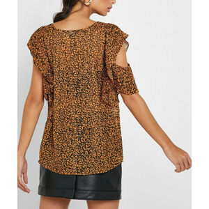 TOPSHOP NEW $68 Animal Print Plisse Ruffle Top Brown Multi US Size 4