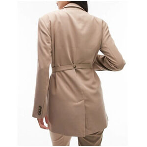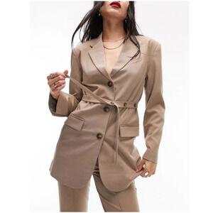 TOPSHOP NORDSTROM Women's Tan Three Button Belted Blazer Size 8