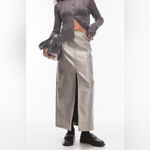 TOPSHOP NWT Metallic Faux Leather Maxi Skirt Size 8