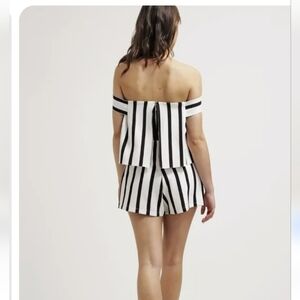 TOPSHOP Off sboulder black/white striped tailored romper. Size US 0